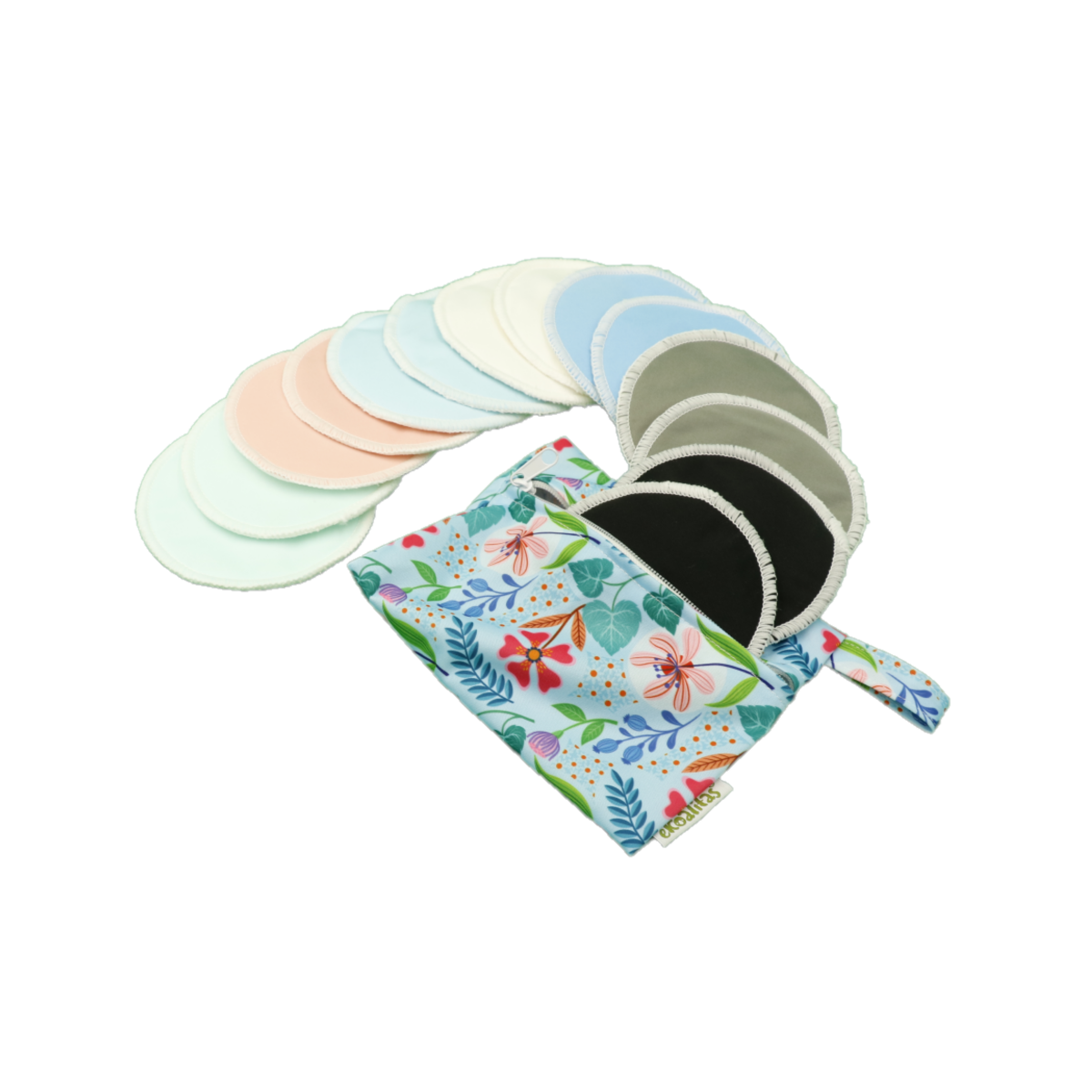 El pack de protectores de lactancia están compuestos por 8 almohadillas (4 pares) y 1 mini wet bag (impresión aleatoria)